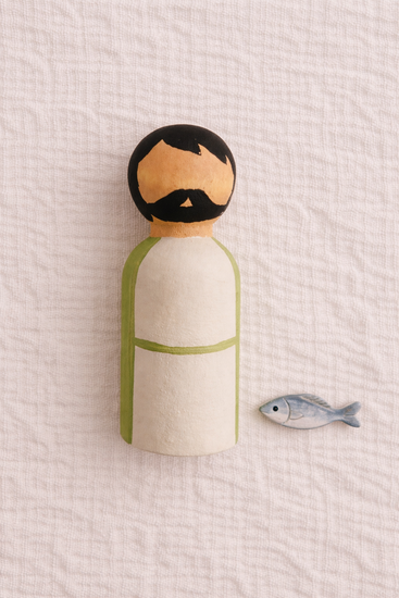 This hand-painted disciple figure invites children into the stories of Jesus through simple, thoughtful play. As they walk beside Him in each moment, little ones begin to understand friendship, trust, and what it means to follow. Colors vary among disciples.