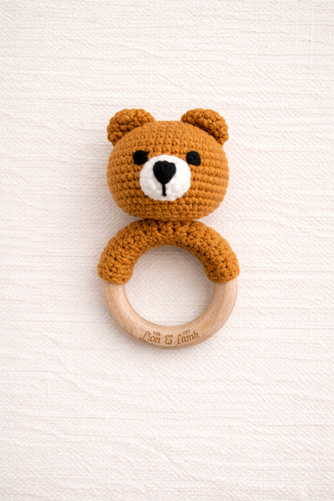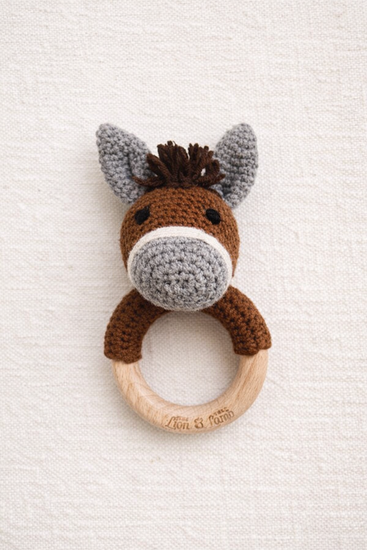 Lovingly hand-crocheted with care, our baby rattles are designed to bring comfort, beauty, and gentle joy to your little one’s earliest days. Each piece is thoughtfully made using soft, baby-safe yarn and finished with a smooth natural wooden ring, perfectly sized for tiny hands to grasp and explore.